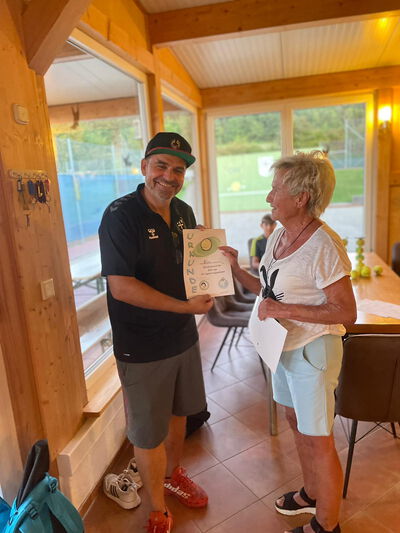 15 Teilnehmer hatten am 18.09.20 viel Spaß an unserem zweimal verschobenen Tennis - Event. Preise gab es für Können und Geschicklichkeit. Selbst spät bei Dunkelheit fand Groß und Klein kein Ende. Begeisterung und Danksagungen erhielt Barbara noch Tage danach.