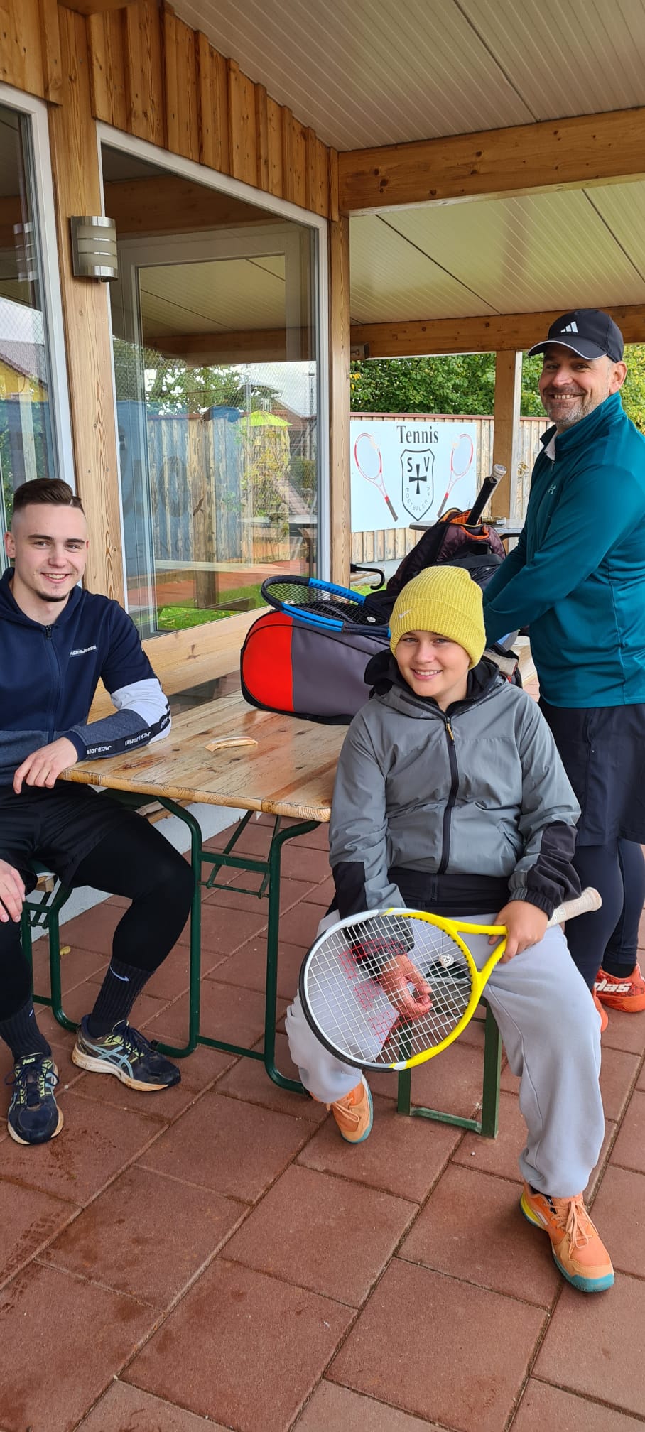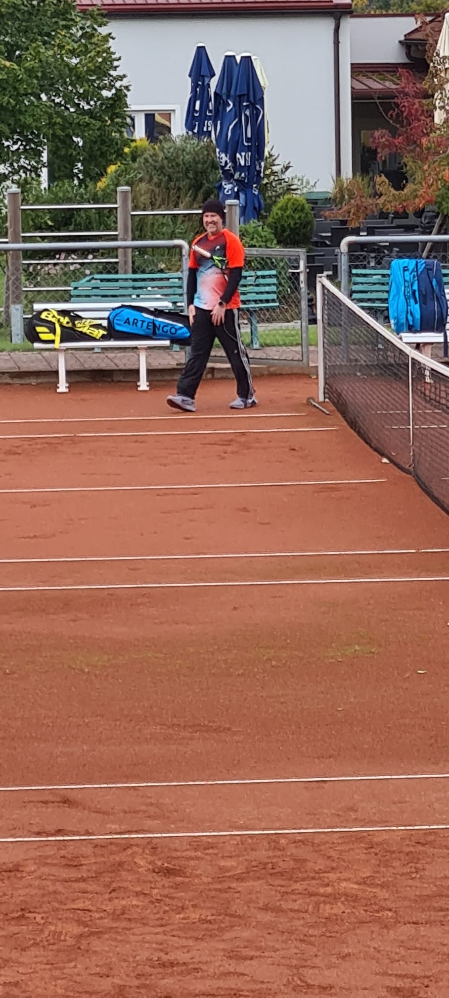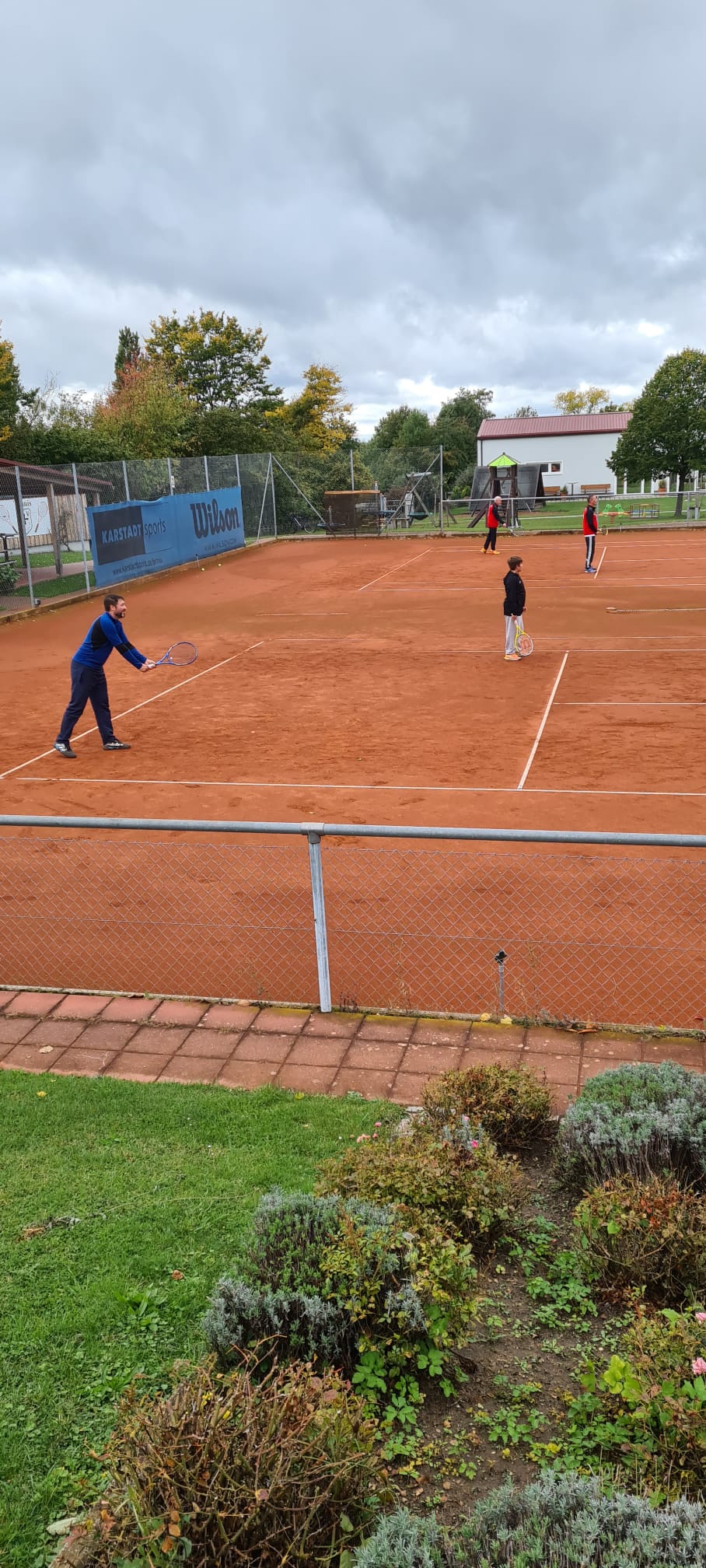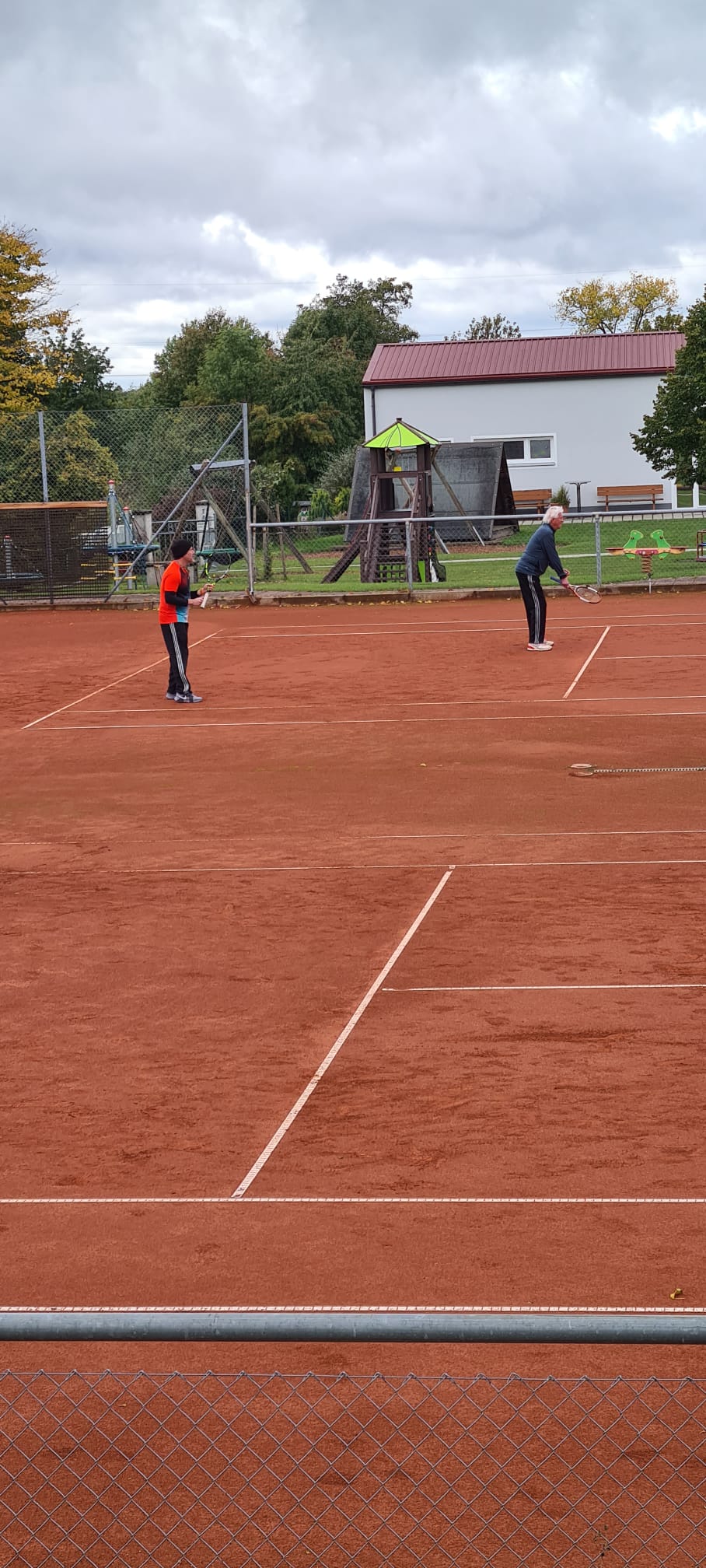 Es hat uns trotz schwieriger Wetter Bedingungen sehr gut gefallen und wir konnten tatsächlich über 2 Stunden in wechselnder Zusammensetzung Doppel spielen.